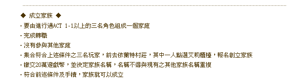 %副家長 角色名稱(設定家族會員成為副家長,每個家族的副家長只能設定2位,如家族已有兩名副家長而玩家需要把其中一位副家長改為另一位家族會員需要使用以下指令)