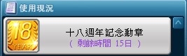 ※注意:十八週年記念勳章:物品只可在活動舉行期間使用,活動結束後物品將無法使用
