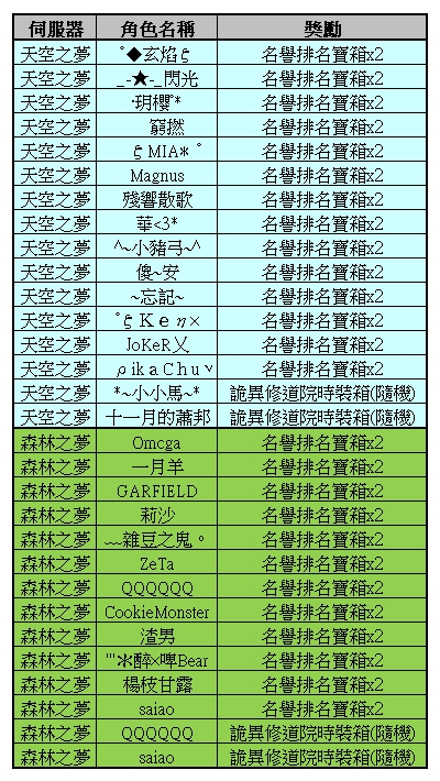 ●所有伺服器共通,每個帳號只能完成一次任務。