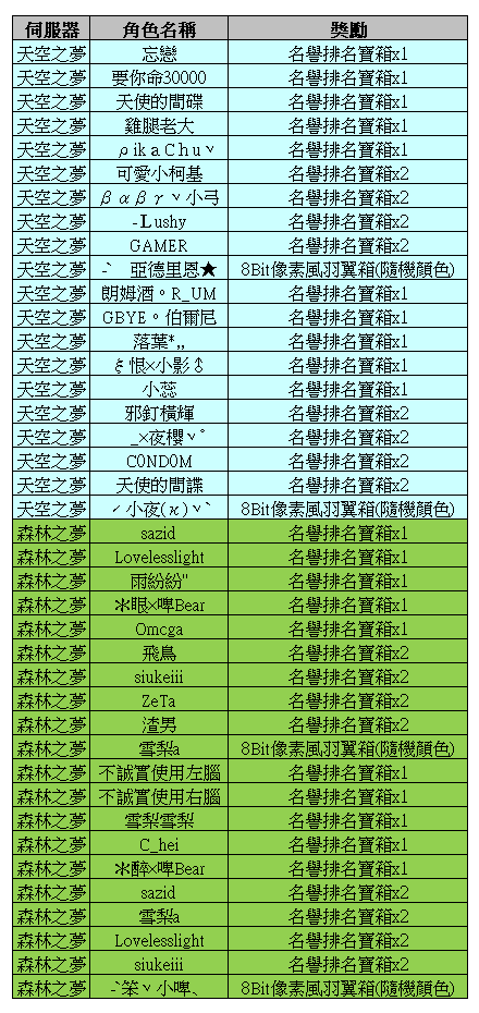 ●所有伺服器共通,每個帳號只能完成一次任務。
