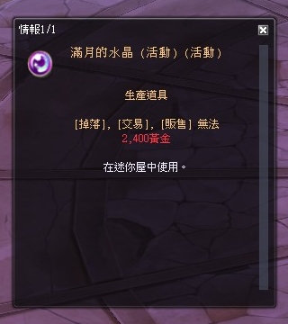「滿月的水晶(不可交易)(活動)」錯誤顯示為「滿月的水晶(活動)(活動)」預計下次版本更新時會修正。