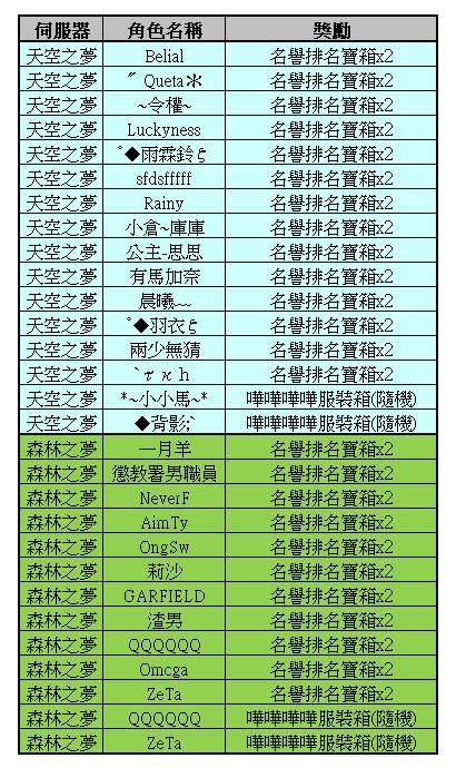●所有伺服器共通,每個帳號只能完成一次任務。